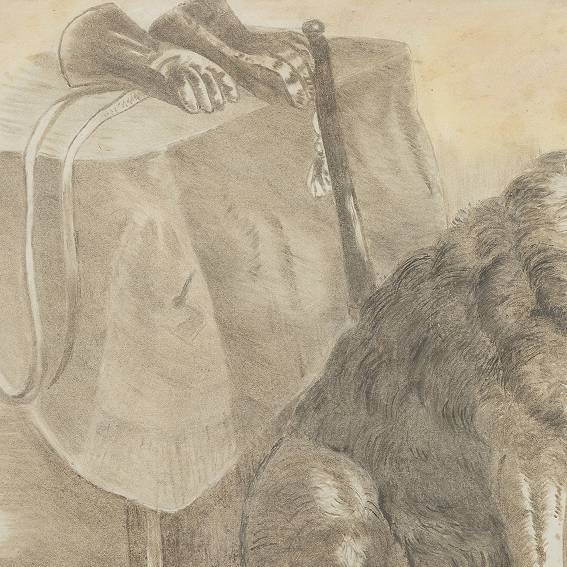 Antique Mixed Media Study with Dog and Gloves, 1888