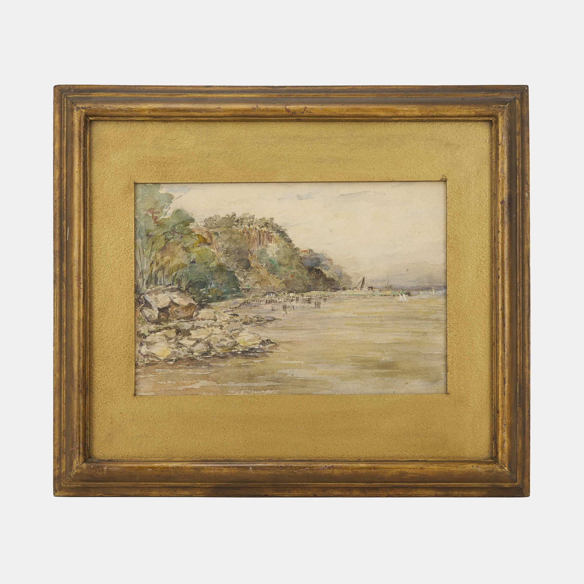 Antique Watercolor of Cliffside Cove, Early 1900s