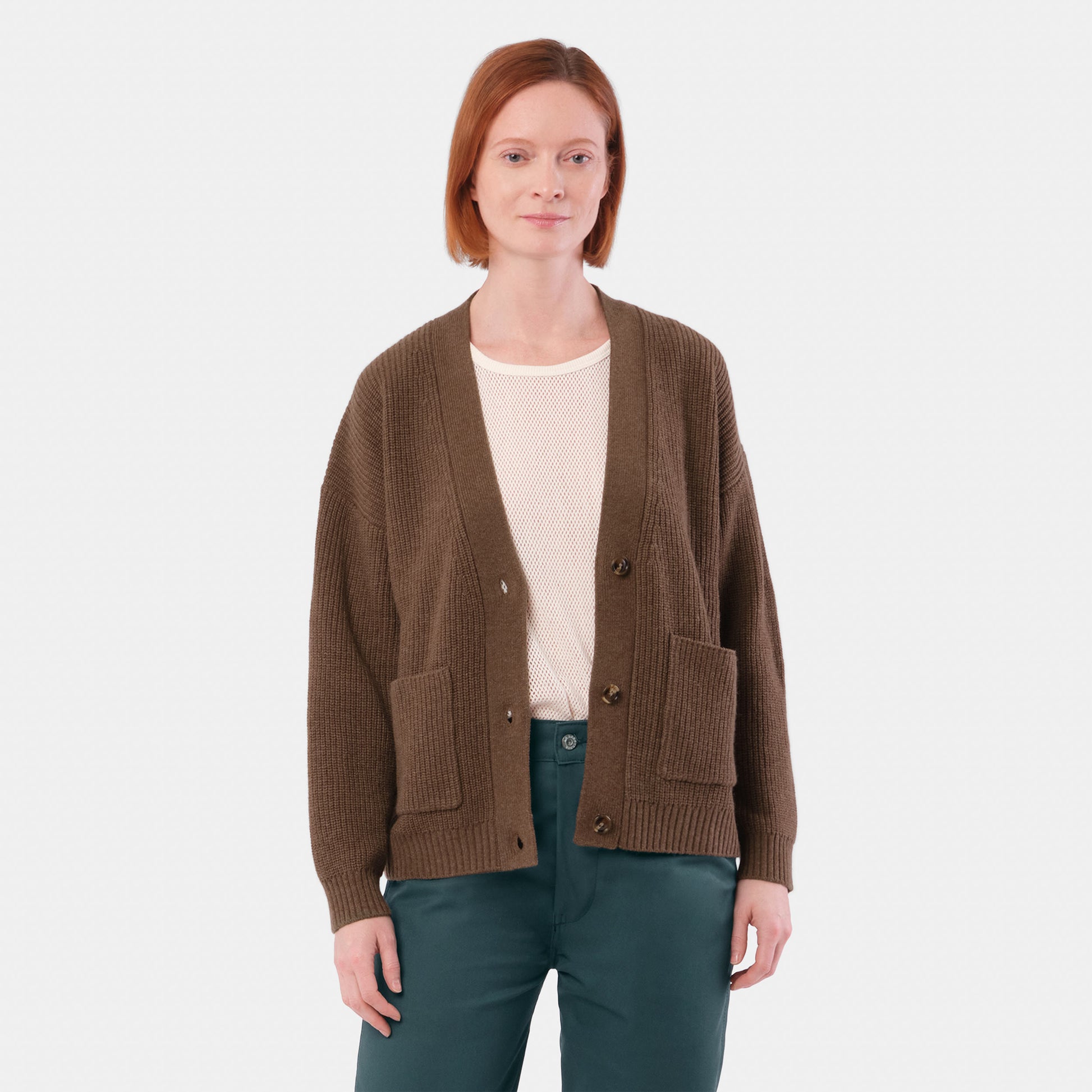 Knit in a classic shaker stitch, our cardigan features drop shoulders, two patch pockets, and three understated buttons for a relaxed, easy fit. Ribbed cuffs and hem lend structure, while the mid-weight knit gives just the right amount of warmth through the shifting seasons.