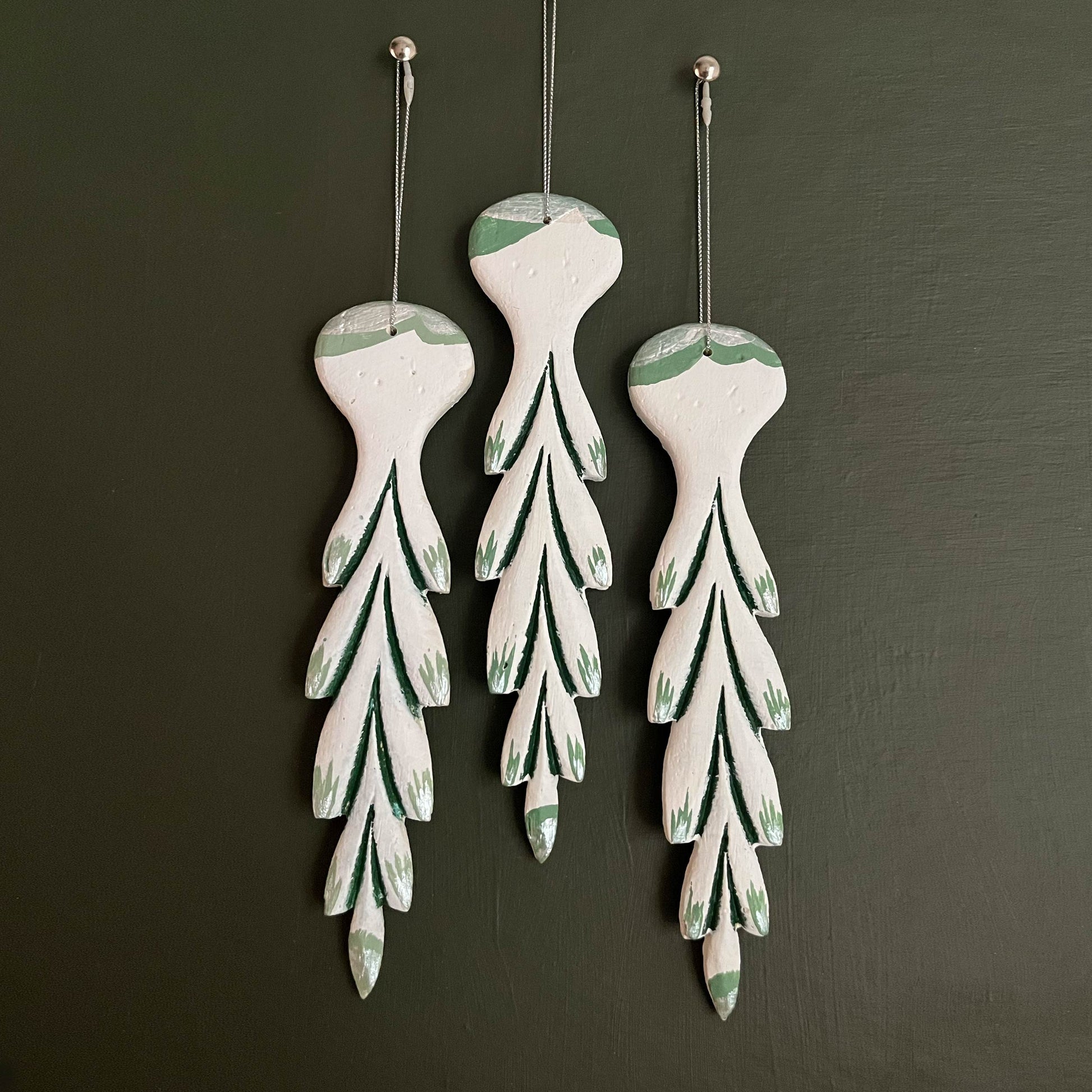 Hand cast and individually painted icicle-shaped ornaments that brings a nostalgic sensibility to your holiday decor. Comes as a set of three, this collection brings unique charm hanging on your tree, mantle, window lintel, and more.