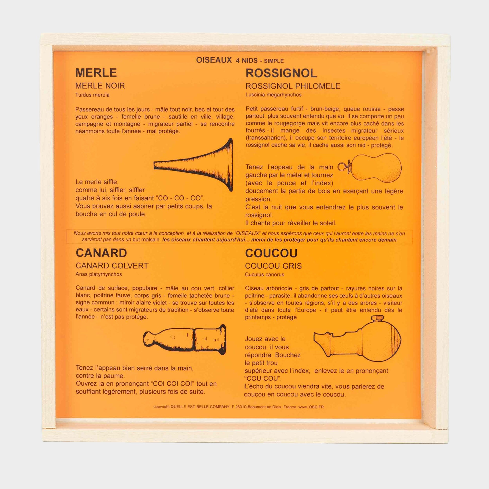 Francois Morel is an artisan bird call maker based in the Drôme region in France. Francois has been making these beautiful wooden bird calls since 1980. Each call is developed to carefully mimic real bird songs, helping you recognize the bird songs in their natural habitat and communicate with them. Like a musical instrument, they require some practice.