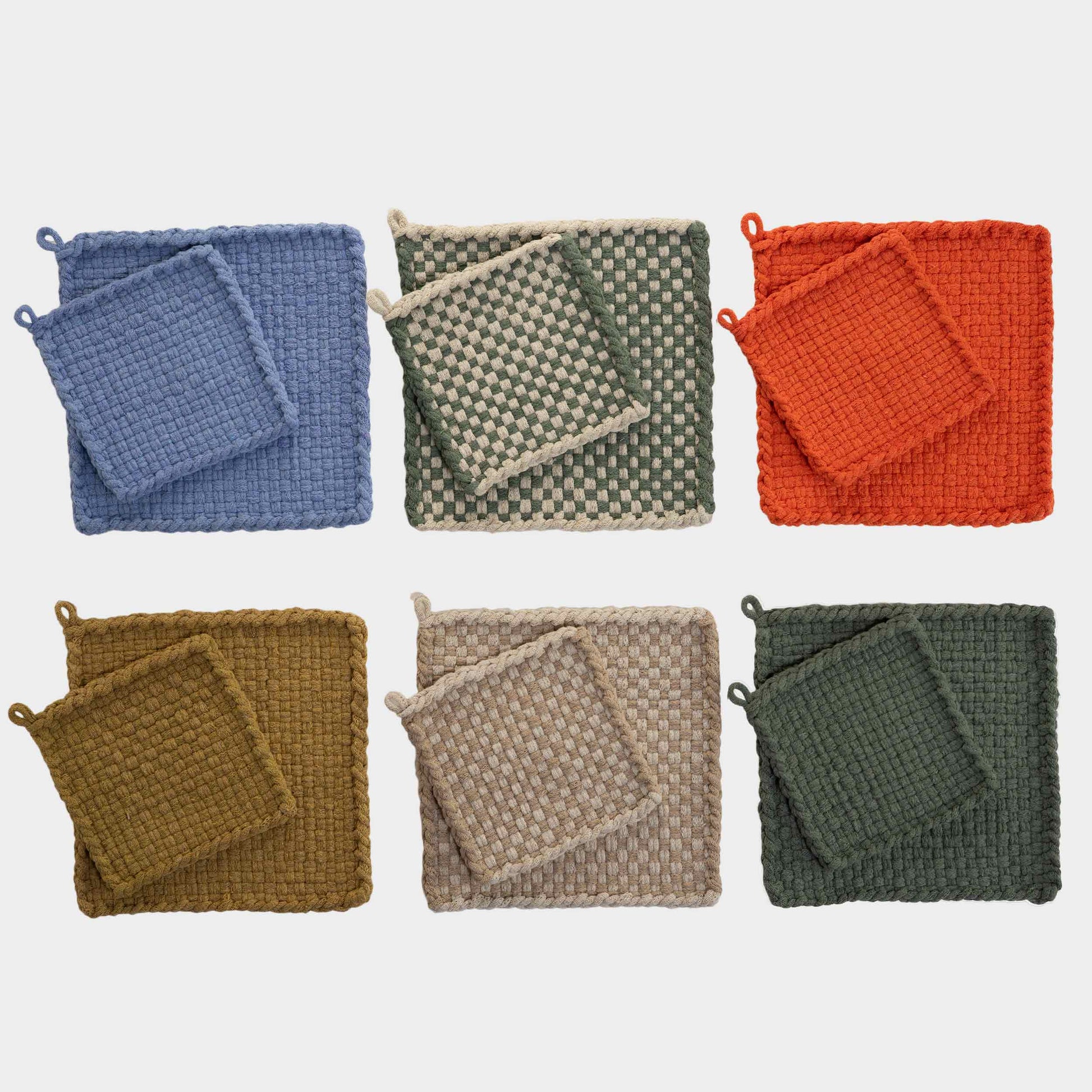 Elevate your kitchen with our Handwoven Potholders, hand made in Ojai, California. Each piece combines traditional weaving techniques with modern design for a practical and elegant addition to any home. Perfect for gifting or adding a touch of charm to your own space.