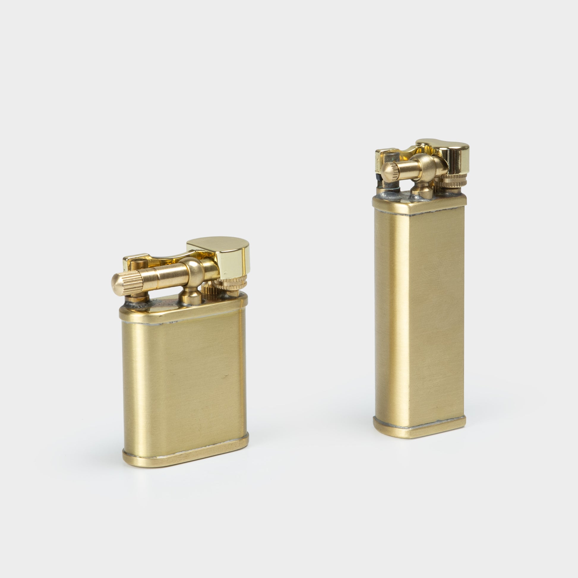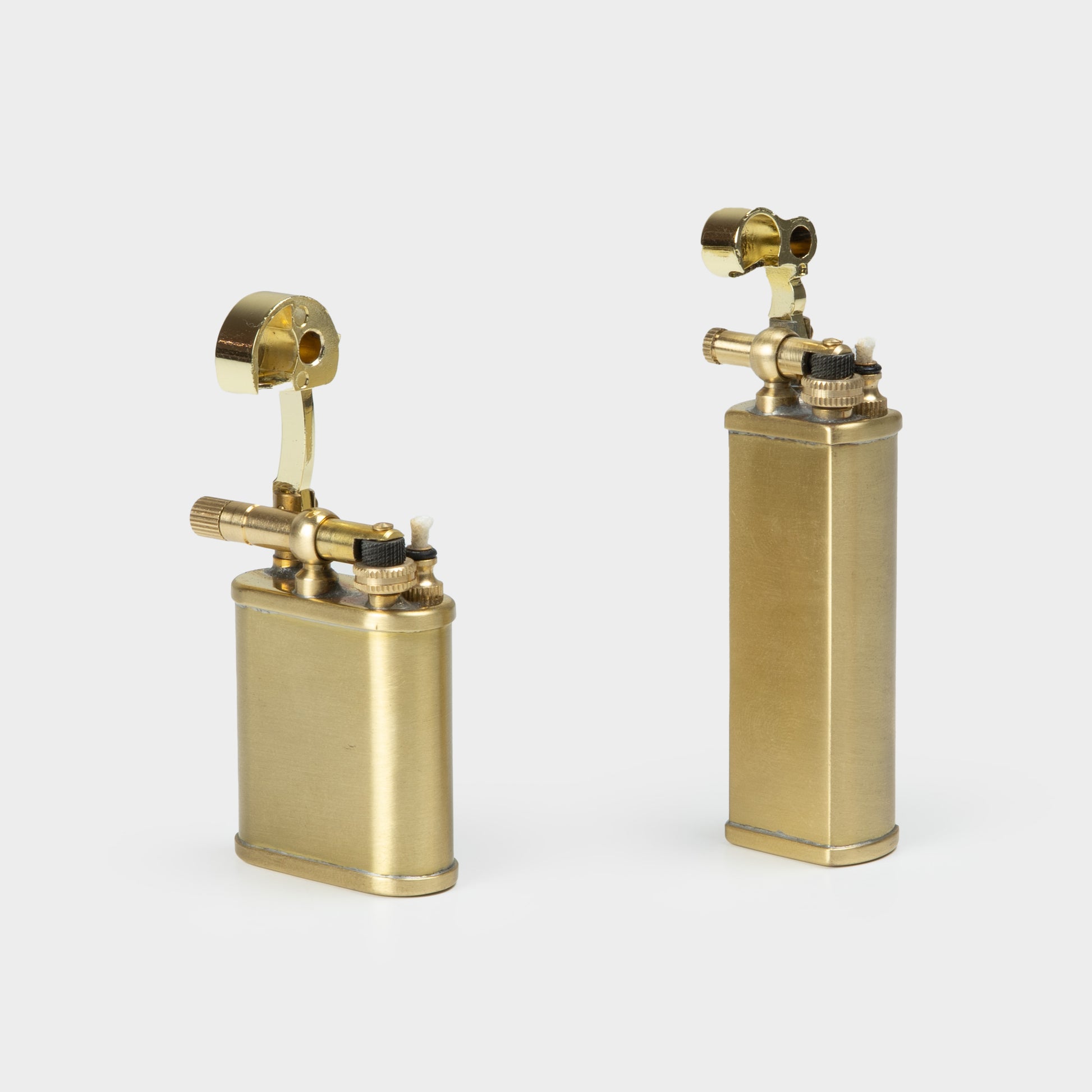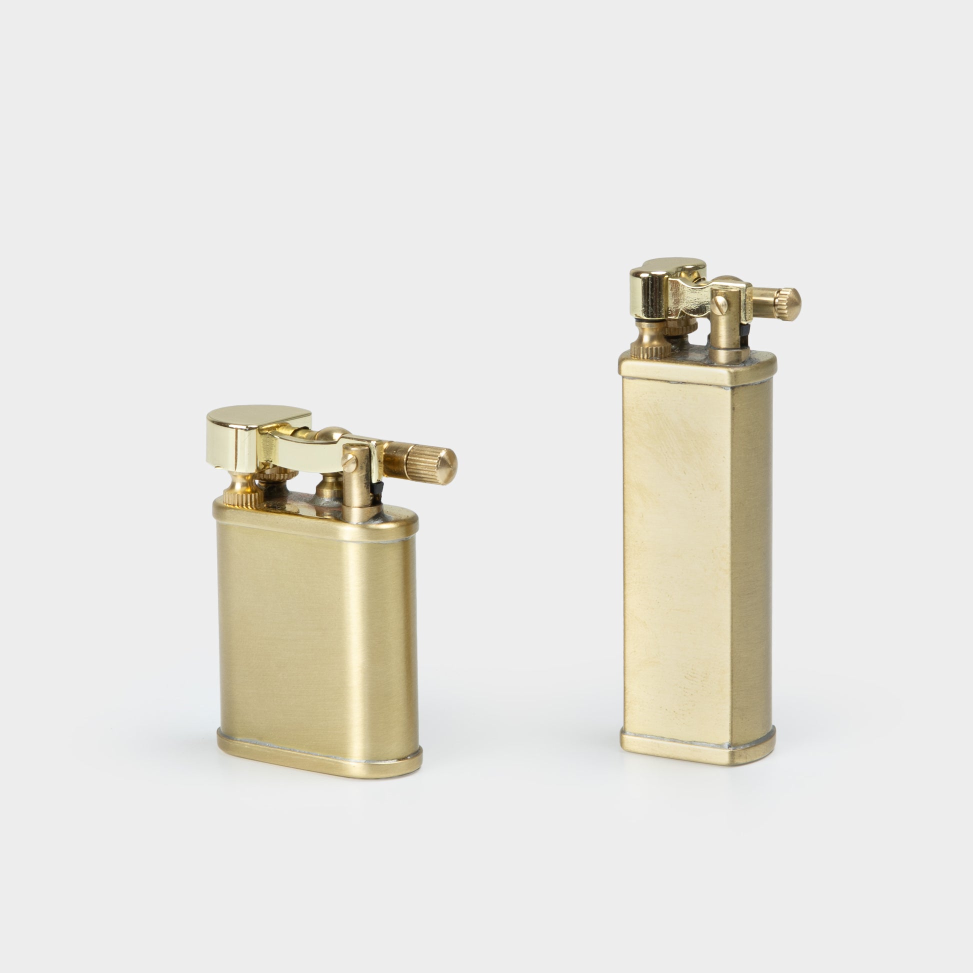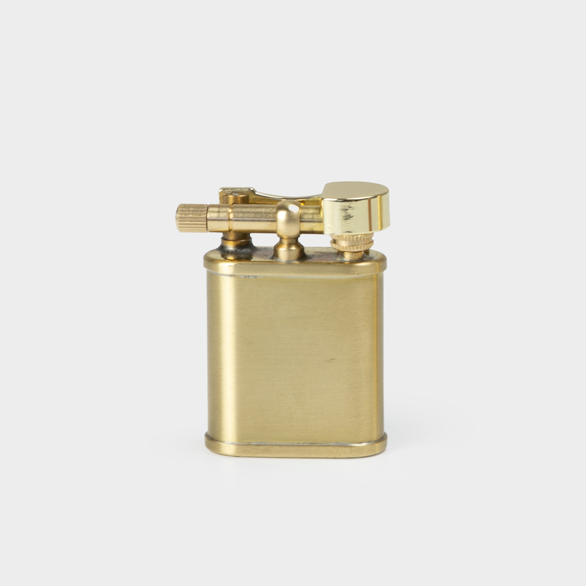Minimal in form, it echoes a tool from another time: elemental, enduring, and meant to be used. With age and use, the brass develops a soft patina—each flick of the flame adding to its character.