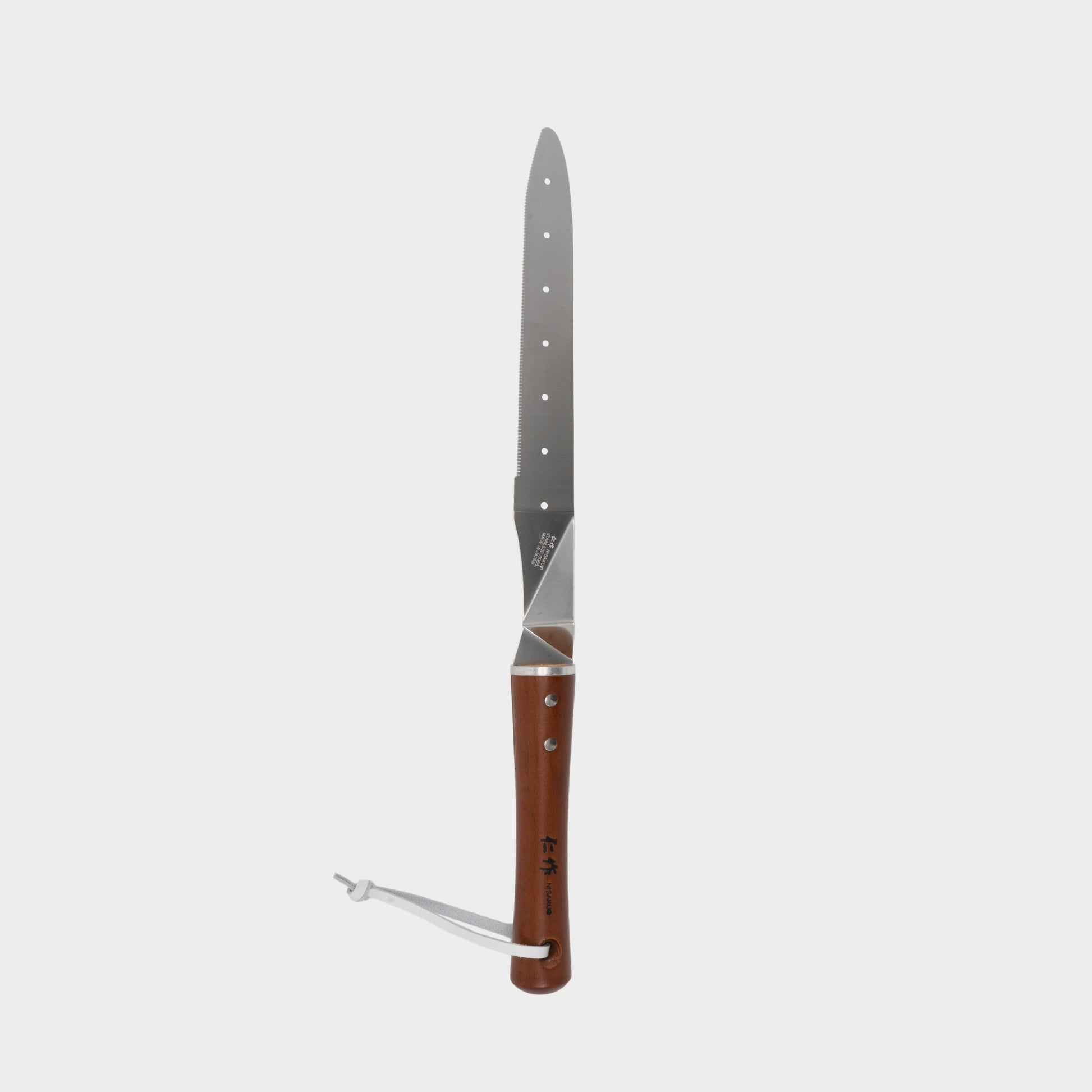 This Japanese Potting Knife is designed to help remove bonsai trees and other potted plants cleanly and safely from their containers during transplanting. The sharp stainless steel edge cuts through roots and soil, while the long handle offers control and reach. Ideal for repotting work across small to large bonsai specimens, as well as regular houseplants and garden pots.
