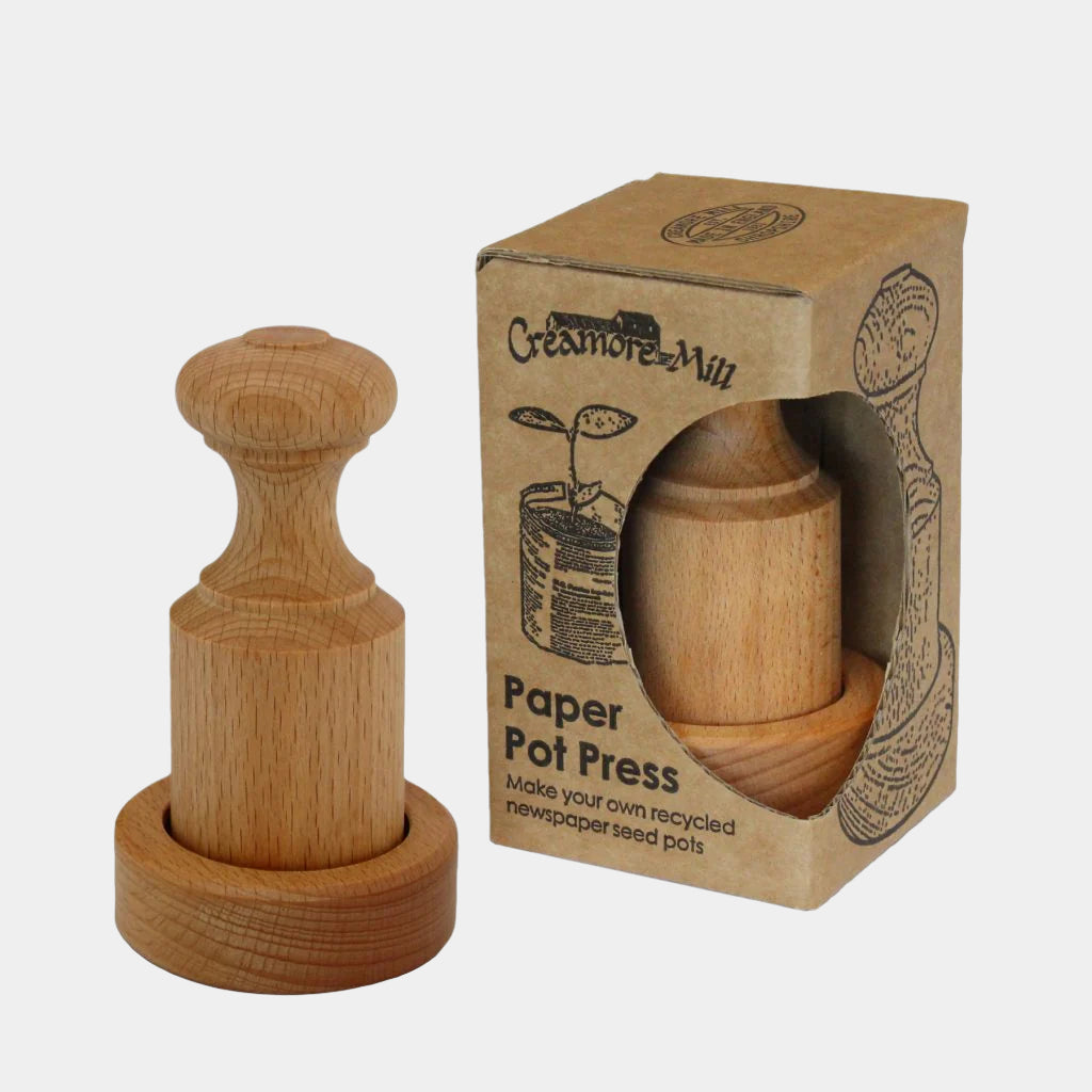 A great way to keep your gardening free from un-sightly plastic trays and pots. Use the press form and crimp strips of newspaper into plant pots. Seedlings can be left in the pots when planting out to avoid disturbing the roots, and the newspaper rots down in moist soil. Growing your own plants from seed is now even more cost effective and environmentally friendly.