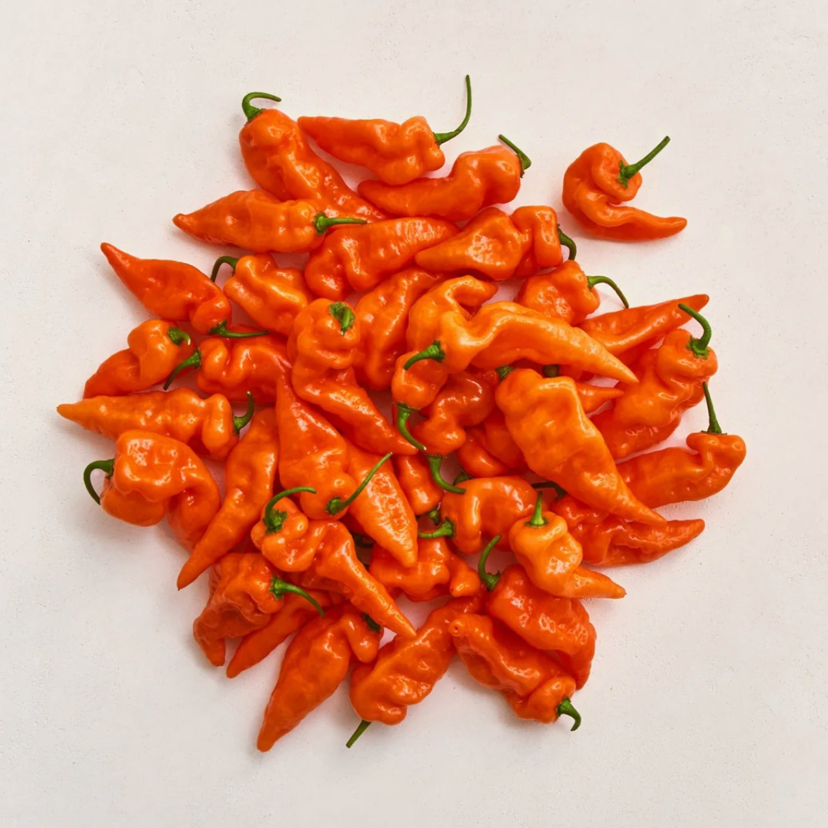 These seeds trace back to habanero peppers, known for their intense heat, but this line emerged from a natural, heatless mutation discovered in the field. Through years of crossing, selection, and DNA analysis, it was removed the habanero’s burn while preserving its floral, melon-like flavor. The result, Habanada, is aromatic with a lingering sweetness—enjoyable both green and unripe for a burst of aroma, or fully mature as a bright orange, flavor-forward pepper.