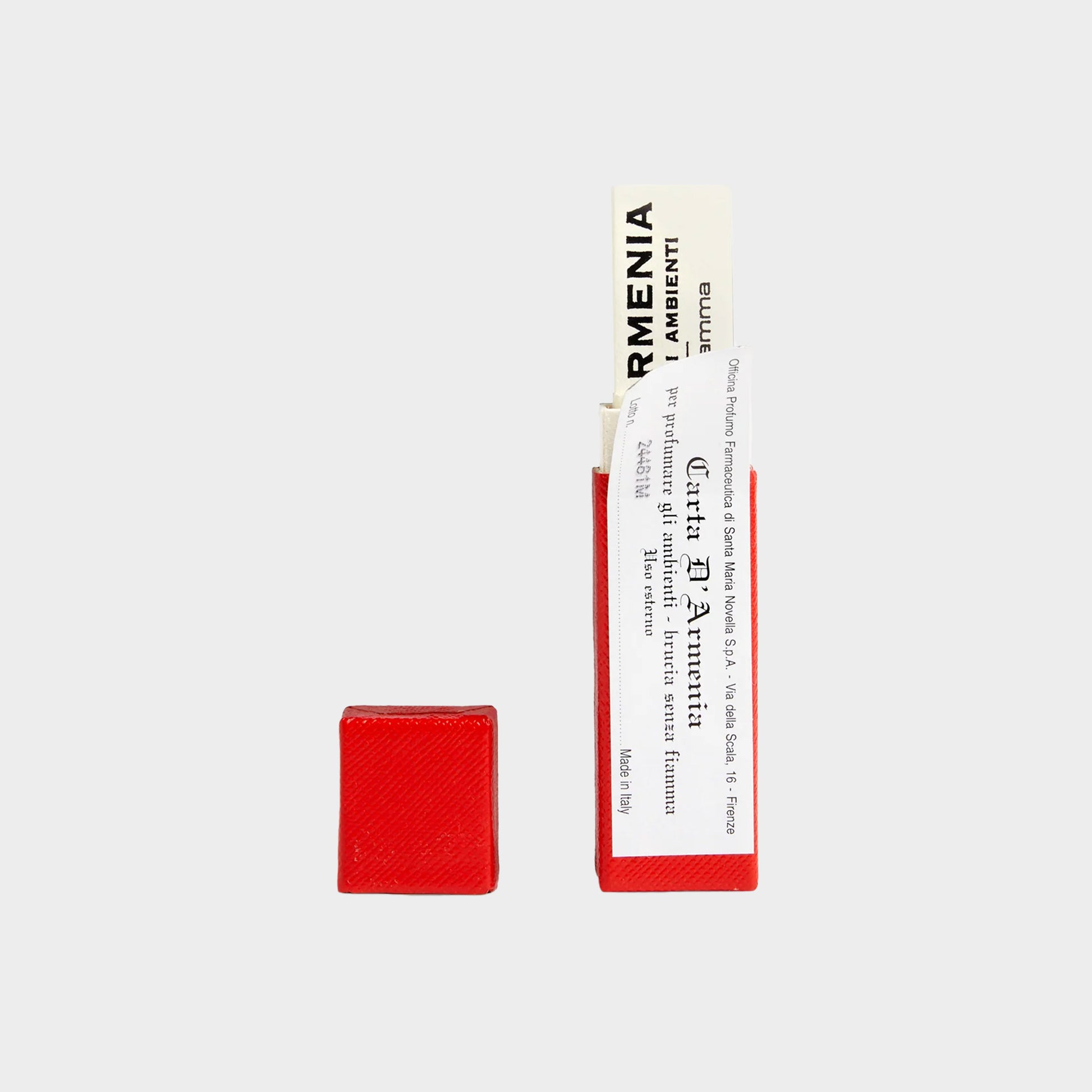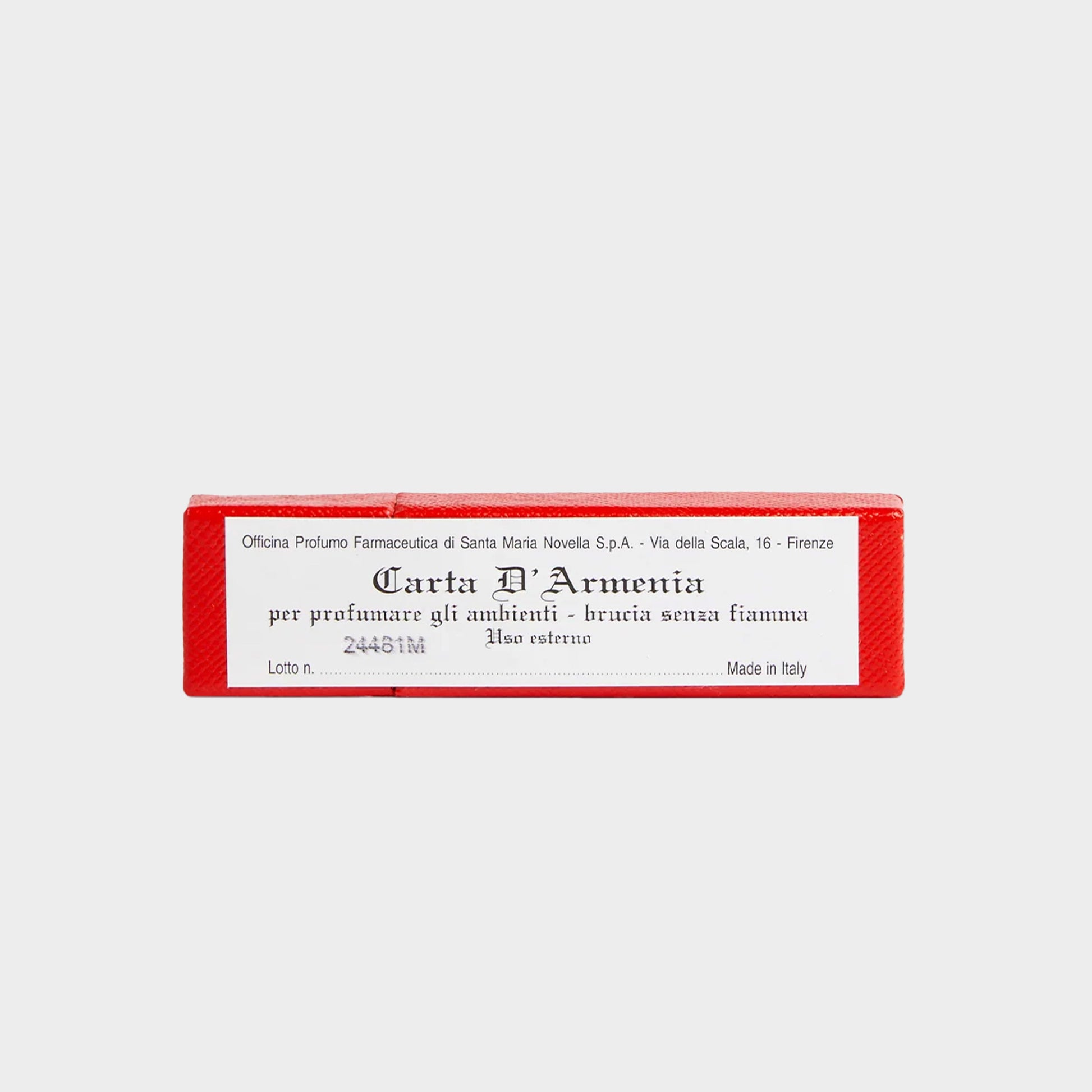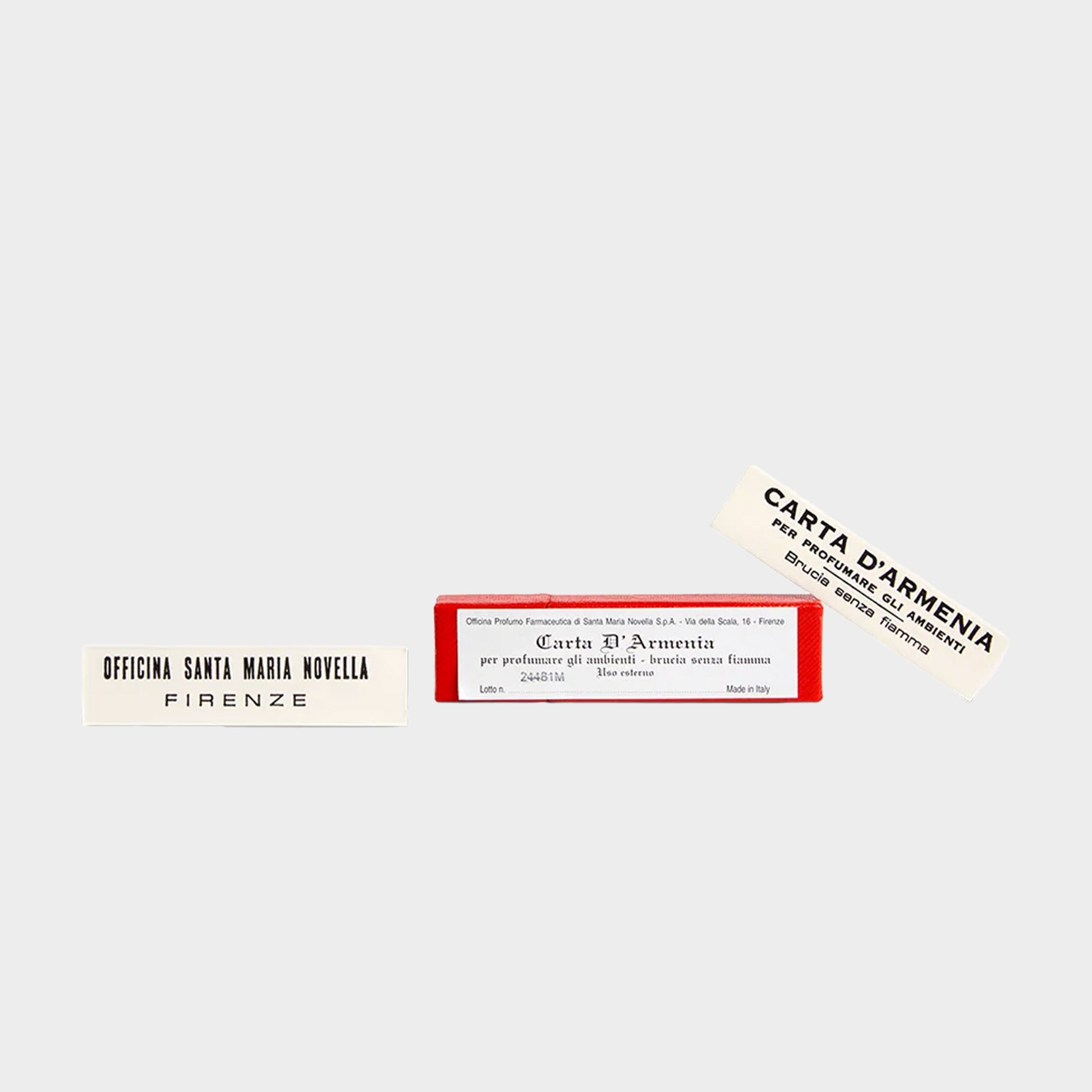 Santa Maria Novella's Carta d'Armenia blends resins and scents into delicate aromatic papers that purify and perfume spaces. Burning without a flame, they release a warm, resinous vapor once widely used to cleanse and scent homes. Marketed since 1885, this is one of the last surviving examples of the "medicinal papers" popular in Europe from the 17th to early 20th centuries. Inspired by an ancient Armenian tradition of burning benzoin resin, these strips evoke a balmy, vanilla-like fragrance that perfumes linens, closets, and living spaces with timeless elegance.