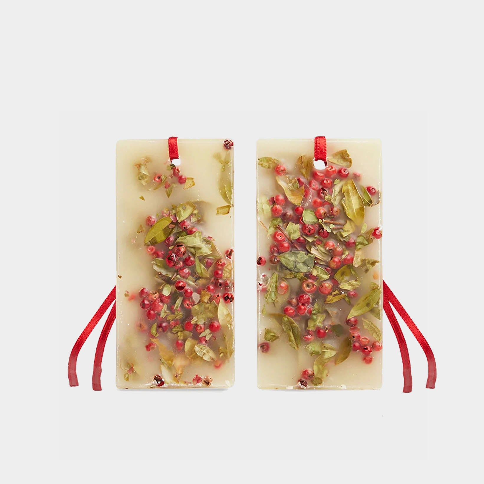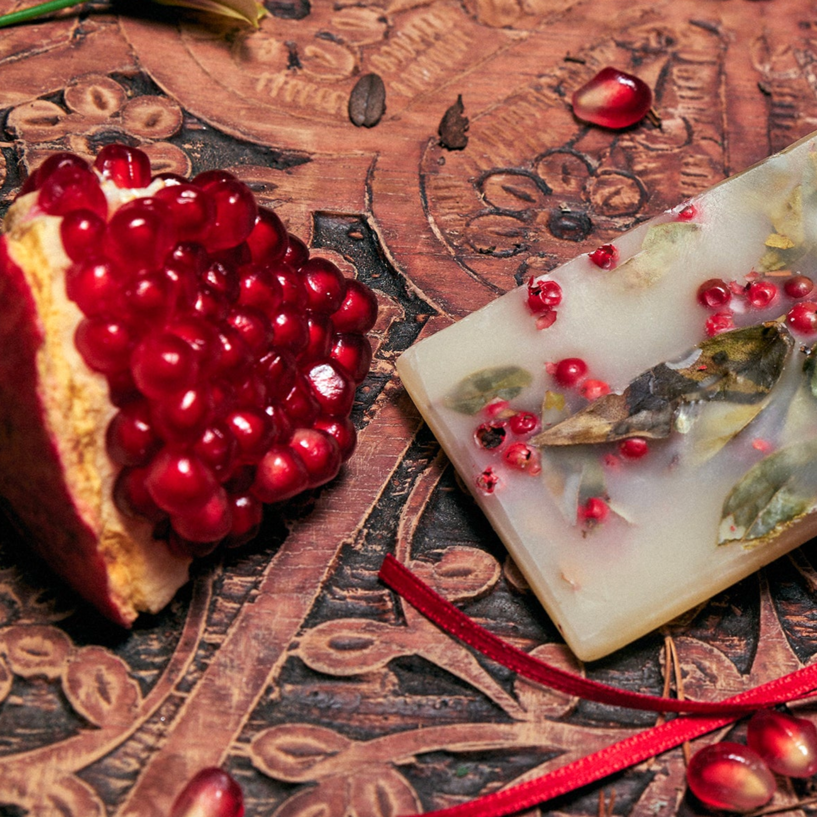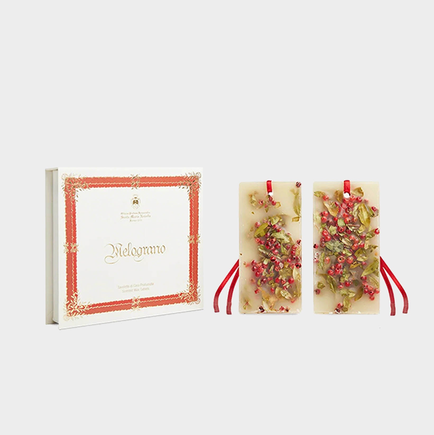 Santa Maria Novella's Melograno Scented Wax Tablets are hand-cast and refined with myrtle leaves and pink pepper, offering a flourishing freshness to drawers and closets. Inspired by the scent of a precious fruit symbolizing abundance and good fortune, these tablets evoke delightful olfactory memories with a warm and floral essence. Part of the exclusive Firenze 1221 Edition, they diffuse the iconic fragrance of Melograno Eau de Cologne, blending notes of bergamot, spices, and labdanum into an elegant handmade artifact that preserves an unmistakable and comforting aroma.