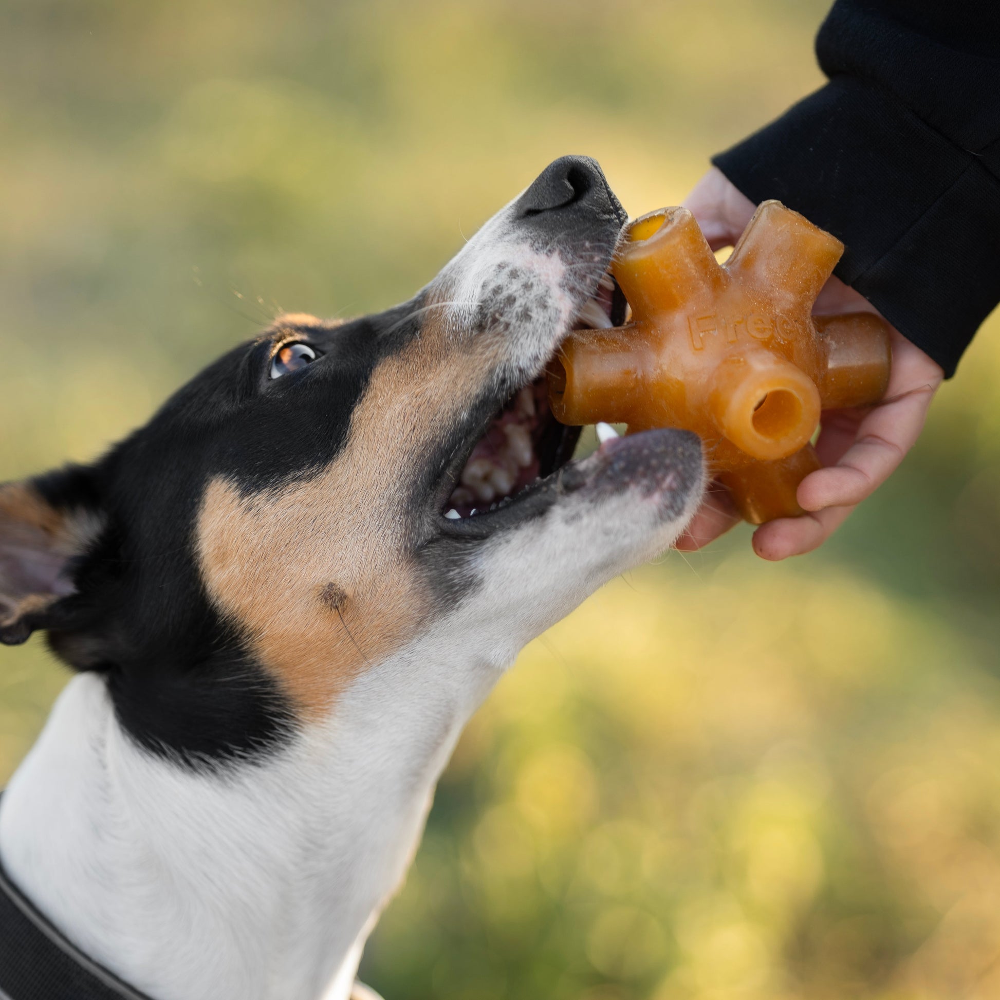 The Sepia Free Jump Toy is crafted from 100% natural organic resin and designed to move with an unpredictable bounce, awakening your dog’s instinct to chase, pounce, and explore. Its hollow interior can be filled with treats or kibble, adding layers of stimulation and reward to every toss or roll.