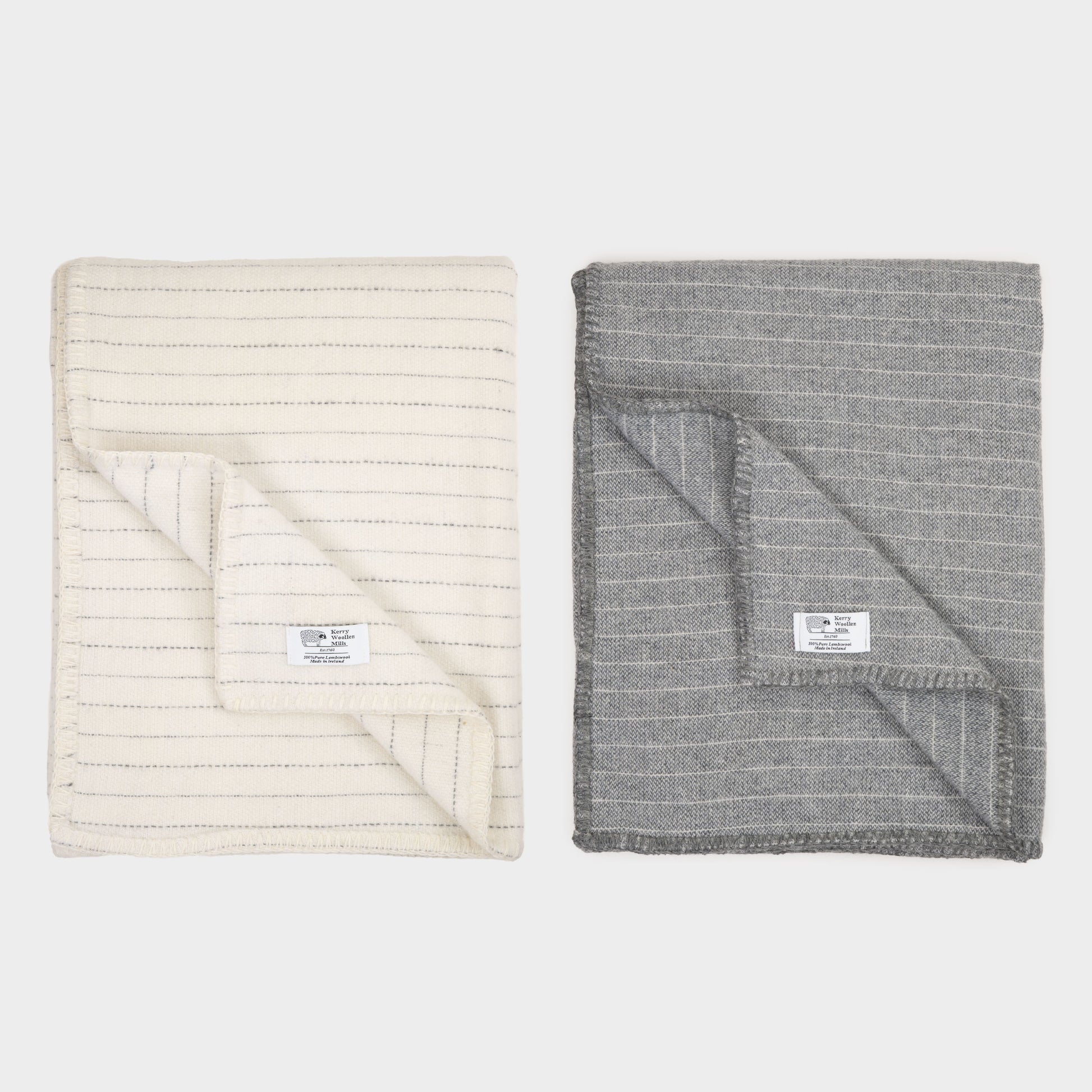 A mid-weight lambswool throw in a timeless pinstripe, this piece is woven to strike a balance between softness and durability. Elegant without trying too hard, it’s the kind of textile you’ll reach for season after season. The warp is spun from 100% pure new lambswool, the weft from fine Merino, and finished with blanket-stitched edges for a subtle, hand-worked feel.