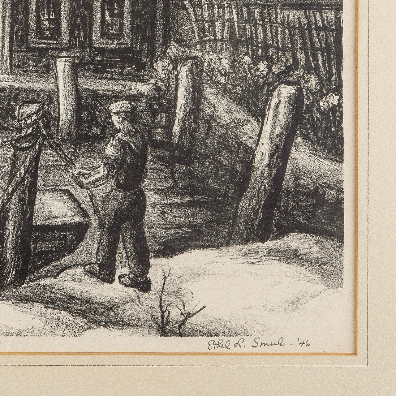 - Lithograph on paper, with mat board. Framed under glass