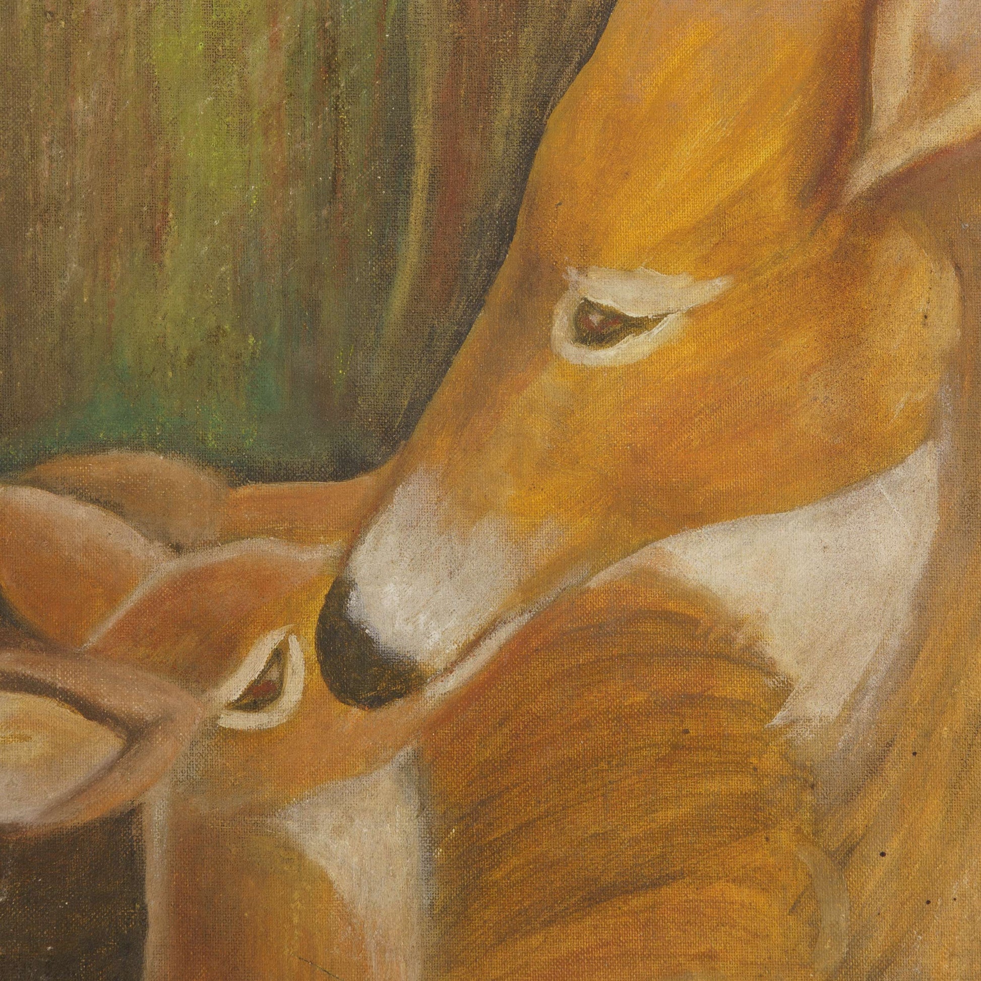 Vintage Painting of Doe with Fawn