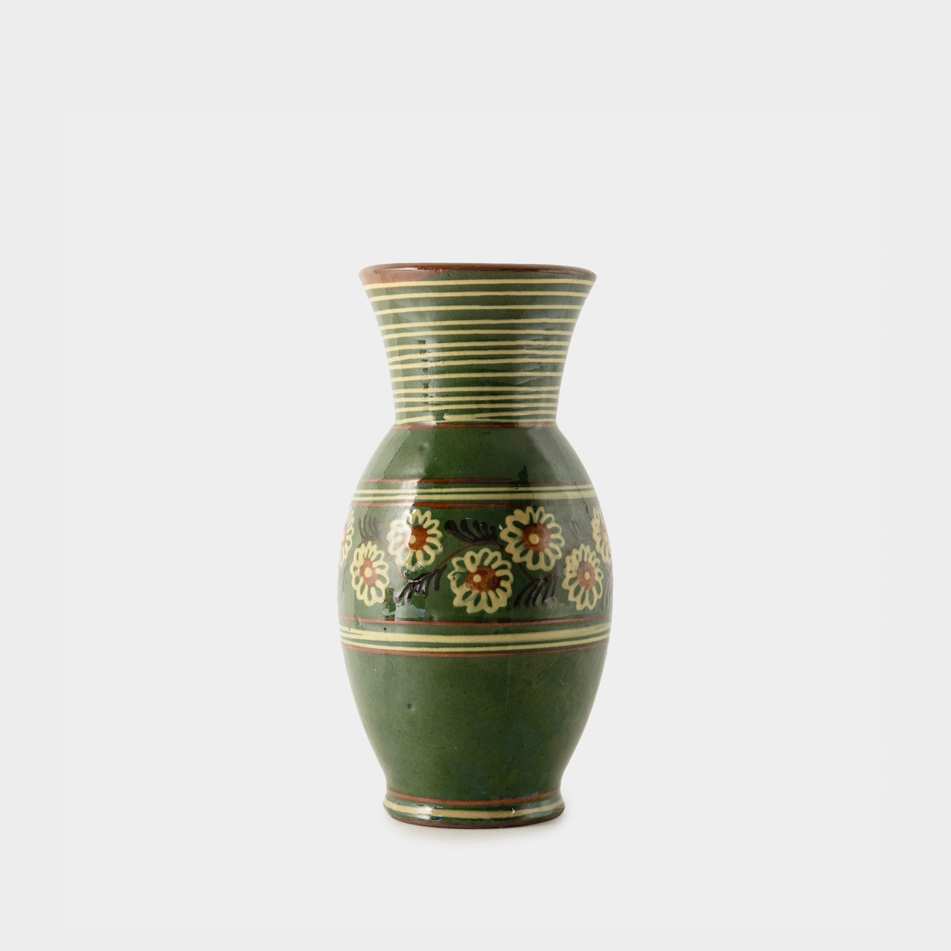 Vintage Redware Vase with Floral Motif