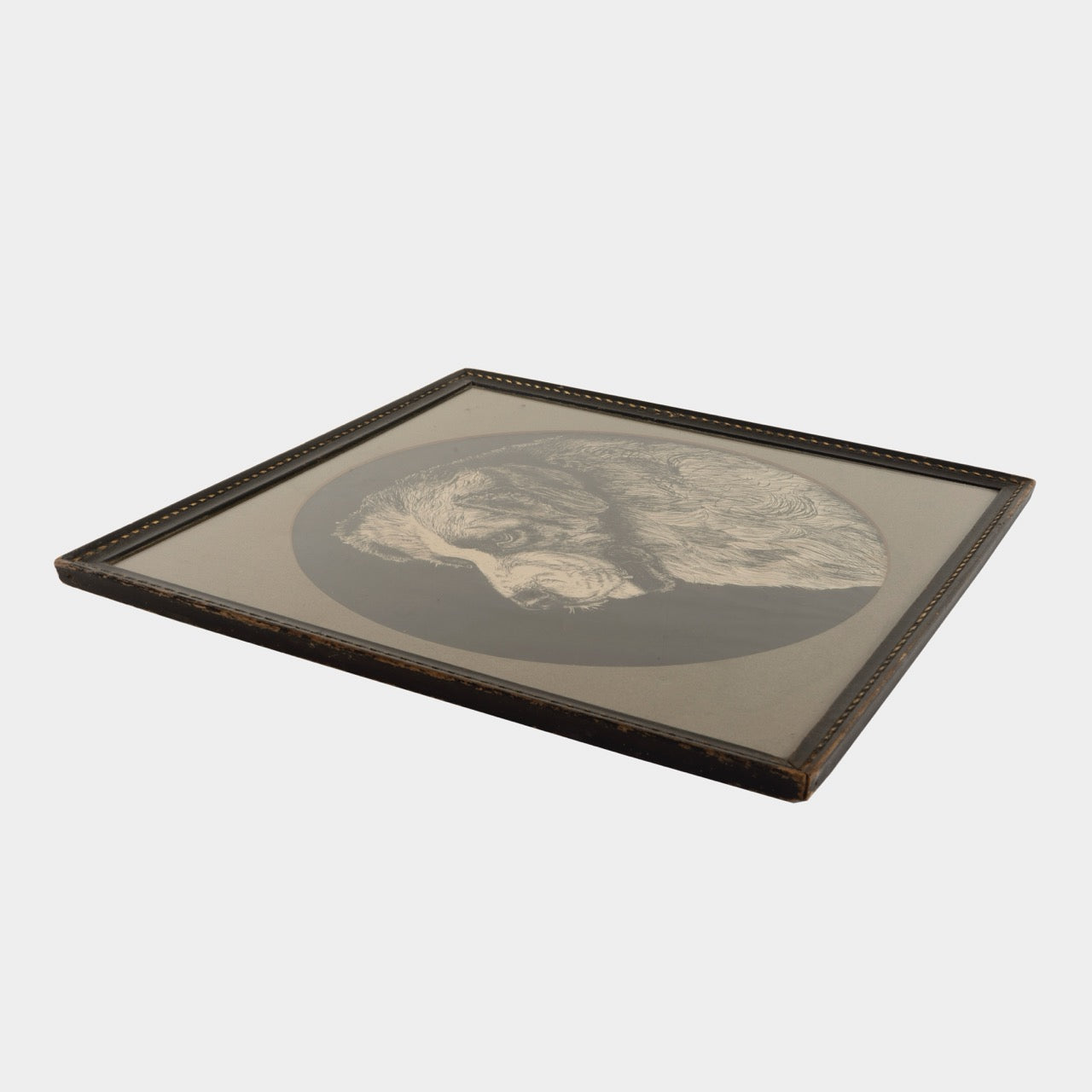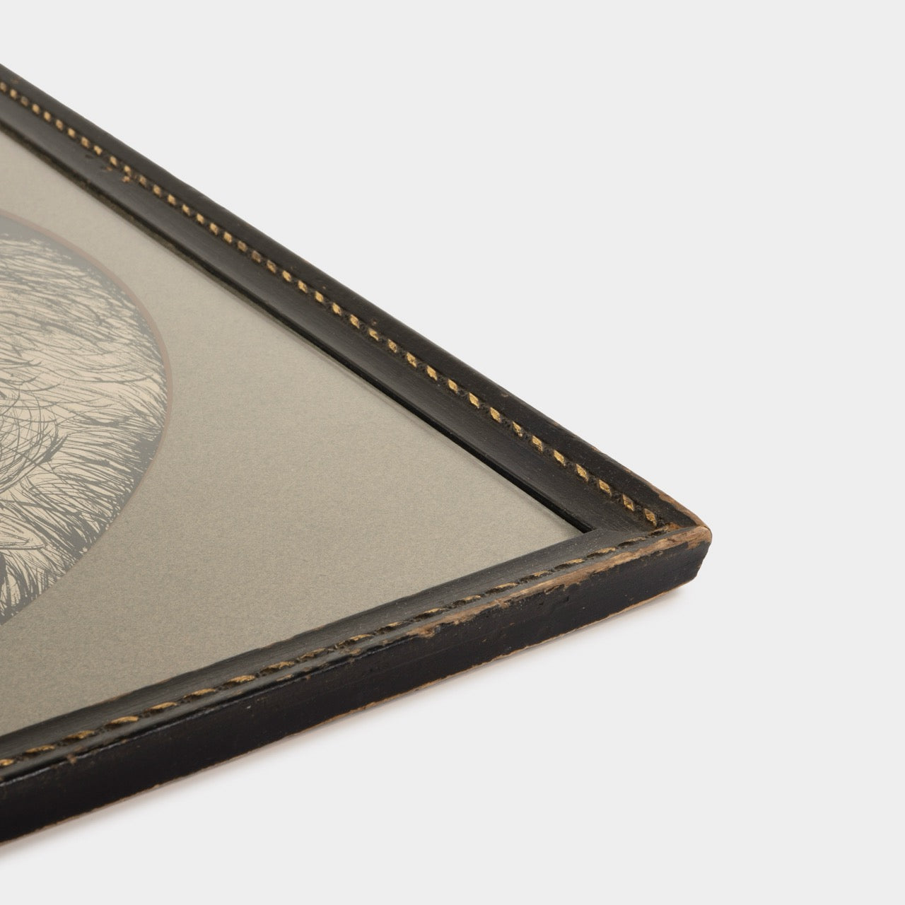 - Drawing in overall nice condition, with some imperfections to plexiglass and mat board.