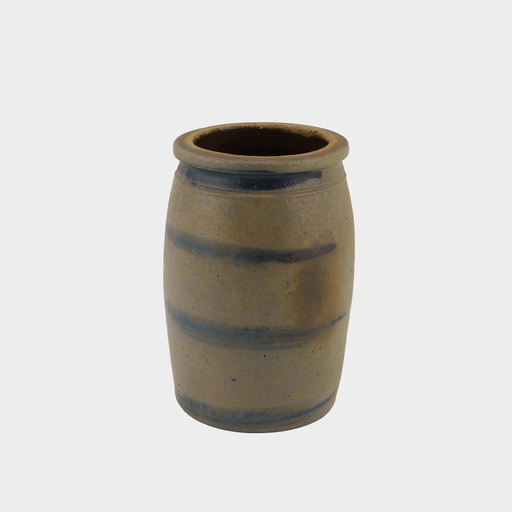 Antique Salt Glazed Stoneware Crock with Cobalt Stripe