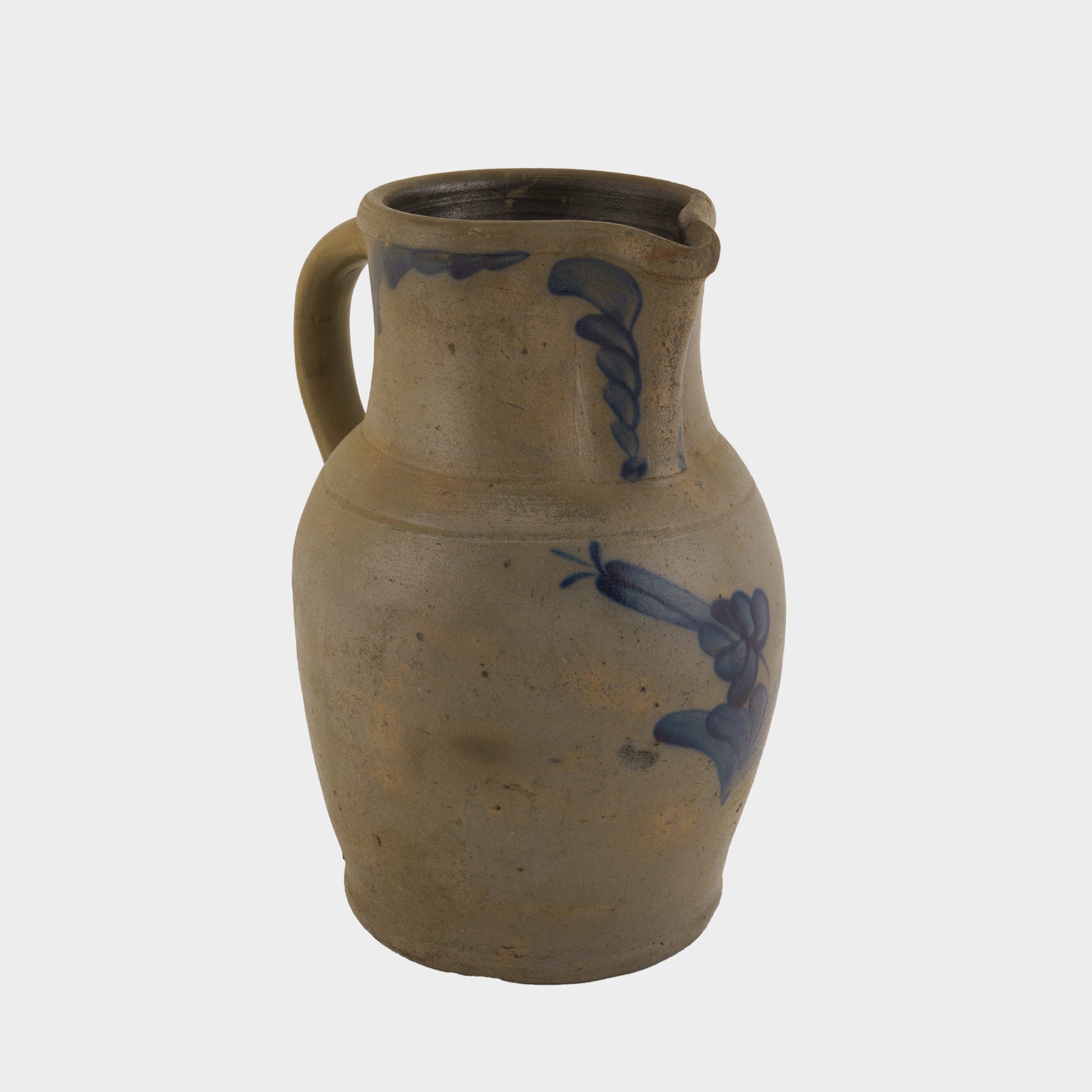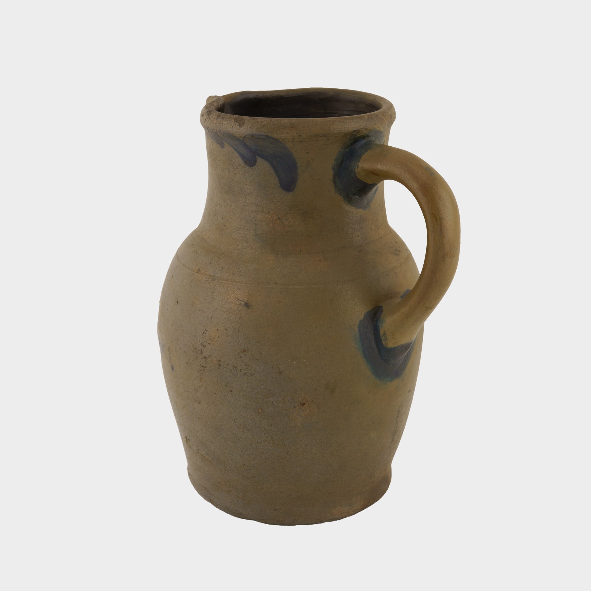 Antique Salt Glazed Stoneware Jug with Cobalt Design